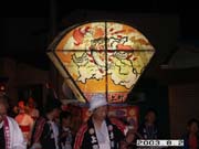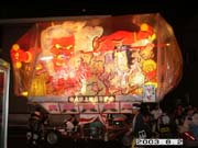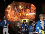 | 「先立・さきだち」と呼ばれる先導隊が踊り子の音楽を鳴らし、続いて婦人部の踊りの連で盛り上げ、いよいよ本体の登場。 その後ろには太鼓やお囃子が続きます。太鼓やお囃子は小、中学生が担当のようです。家の前を練り歩いているところのスナップをご紹介しています。 (12台全部とれなくてごめんなさい。) |
