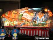旦那さんの故郷、大湊地区に百数十年以上前から伝わる伝統的な祭りだそうで、町内会を中心に製作される手作りねぶたです。 例年、8月の第1金曜から3日間行われるそうで、今年は12台のねぶたが集合しました。 今年はあいにくの雨模様で、ビニールシートがかけられてました。 |